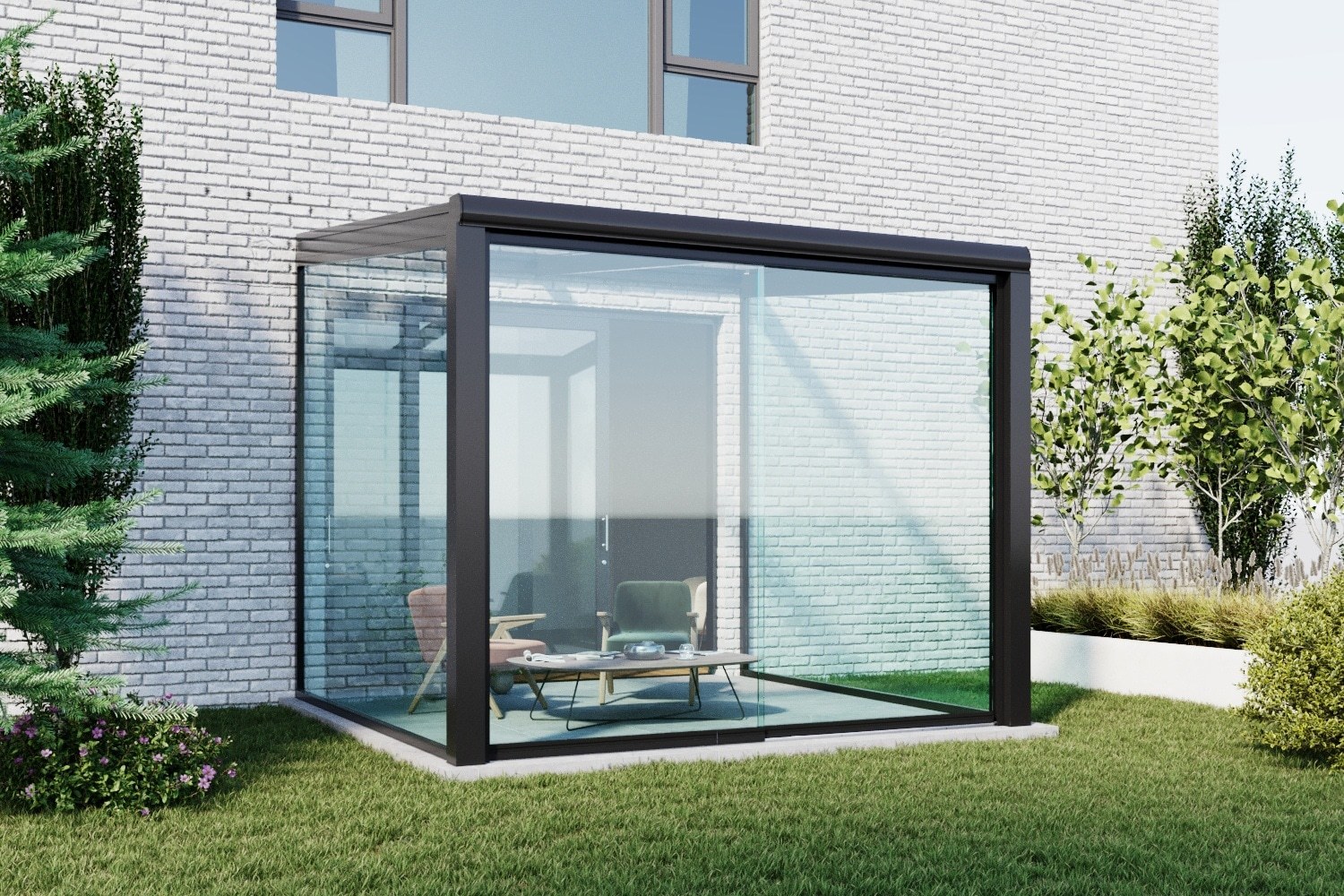 Glazen schuifwanden zijn gemaakt van gehard glas en stevige aluminium profielen, waardoor ze bestand zijn tegen slijtage en extreme weersomstandigheden.